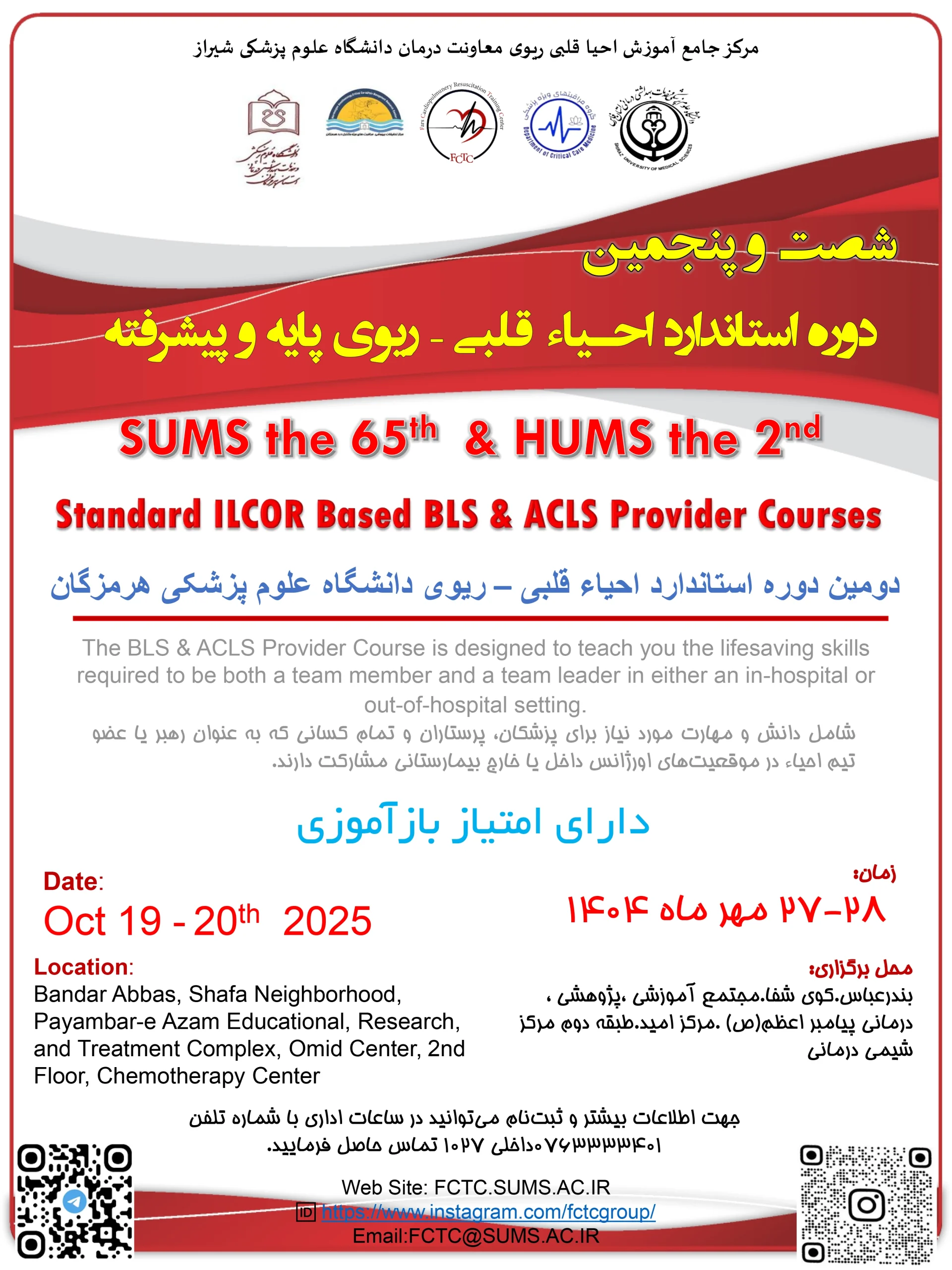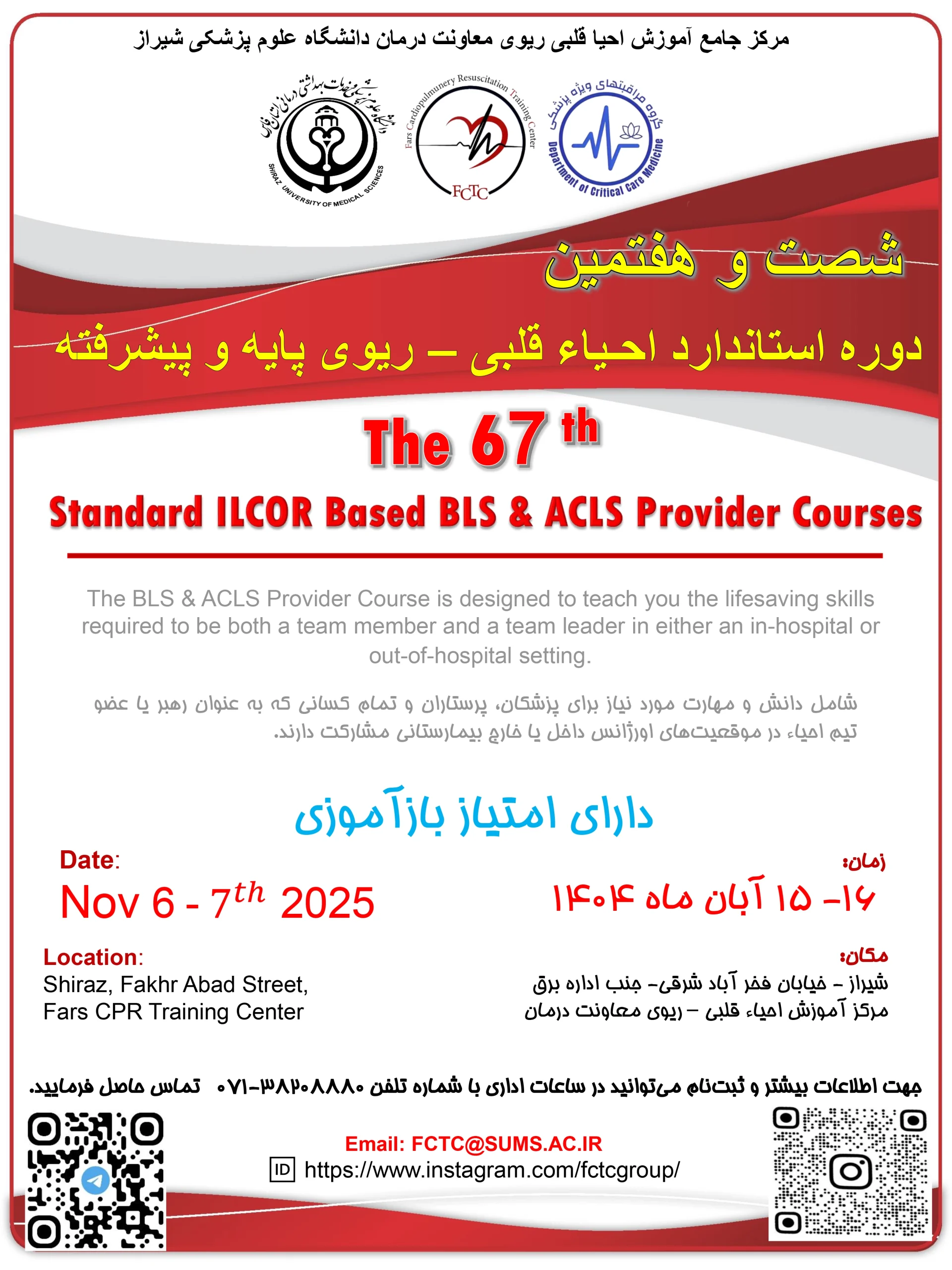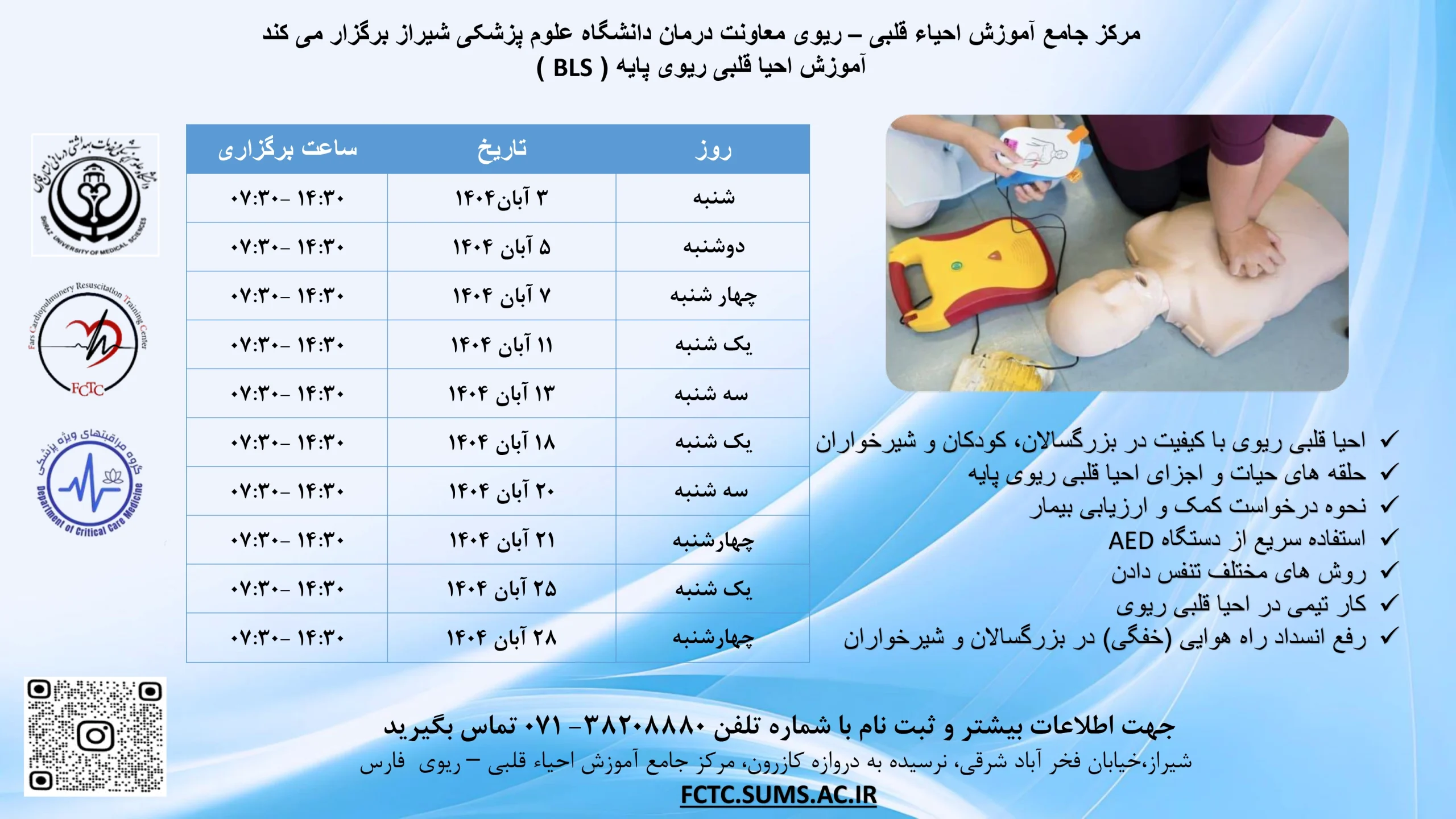 مرکز آموزش استاندارد احیای قلبی ریوی استان فارس ( FCTC )( Fars Cardiopulmonary resuscitation Training Center ) به ریاست دکتر منصور مسجدی متخصص بیهوشی و فوق تخصص بیهوشی و مراقبت های ویژه وعضو هیئت علمی دانشگاه علوم پزشکی شیراز و رئیس کمیته CPR استان فارس و مدرس بین المللی انجمن قلب آمریکا ( AHA ) و زیر نظرمعاونت درمان دانشگاه علوم پرشکی شیراز می باشد. مرکز FCTC اولین مرکز آموزش استاندارد احیای قلبی ریوی به صورت کاملا اصولی و منطبق بر آخرین آموزه های انجمن قلب آمریکا می باشد و همه روزه به صورت کاملا فعال در خدمت متخصصین و پرسنل کادر درمان ، جهت آموزش احیای قلبی ریوی پایه و پیشرفته می باشد.این مرکز از پانزدهم آذرماه سال 1396 به صورت رسمی آغاز به کار کرد و تا به امروز میزبان هزاران نفر از پرسنل کادر درمان جهت آموزش احیای قلبی ریوی پایه و پیشرفته بوده است.